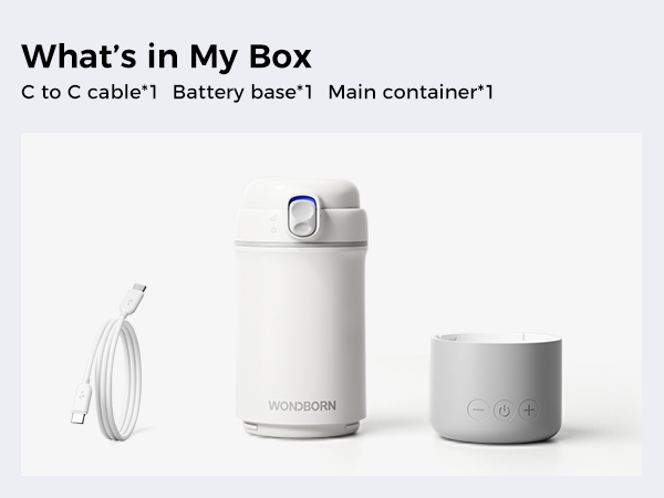 It includes a Type-C cable, a battery base and a main container.