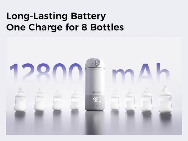 Equipped with a powerful 12800mAh battery—one of the highest capacities available in portable bottle warmers. On a full charge, it can warm up to 8 bottles (4oz each), covering an entire day’s feeding needs when you're out and about. Actual usage may vary depending on milk volume and starting temperature, but it’s designed to give you reliable, all-day support without constant recharging.