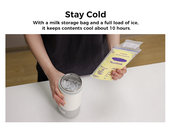 When filled with ice and a milk storage bag, the warmer can keep contents cool for up to 10 hours. This dual-use feature is ideal for short trips—allowing you to skip carrying a separate cooler and travel lighter.