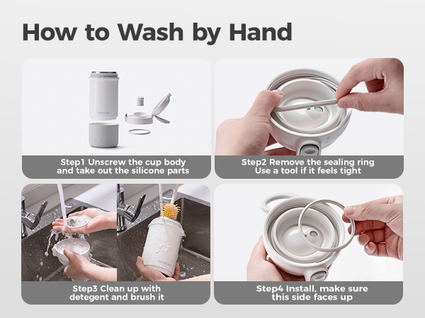 To ensure hygiene and maintain product performance, please clean the cup properly after each use: