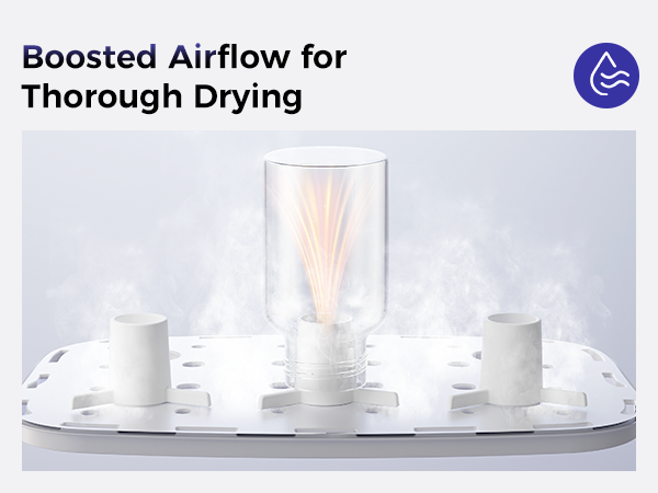 - Effective & Hygienic Drying: Features a dedicated bottle rack that concentrates airflow for thorough, moisture-free drying. Equipped with a HEPA filiter to ensure only purified fresh air reaches your bottles, keeping every item clean and safe for your baby