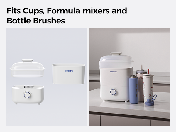 Following our commitment to sustainability, we want our products to serve you long-term. We considered continuous usage during the design phase; the extra-large space and height can also accommodate water cups, formula mixers, breast milk coolers, and other large items for sterilization and drying.